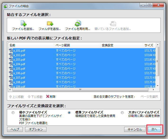 スキャナーを利用した複写では、統合型PDFファイルが作成されます。「電子書庫・書籍・ノート」では、分割型PDFファイルを用いています。従って、統合型PDFファイルから分割型PDFファイルへの変換が必要になります。 「Acrobat Standard」 を用いた手順は、以下のとおりです。