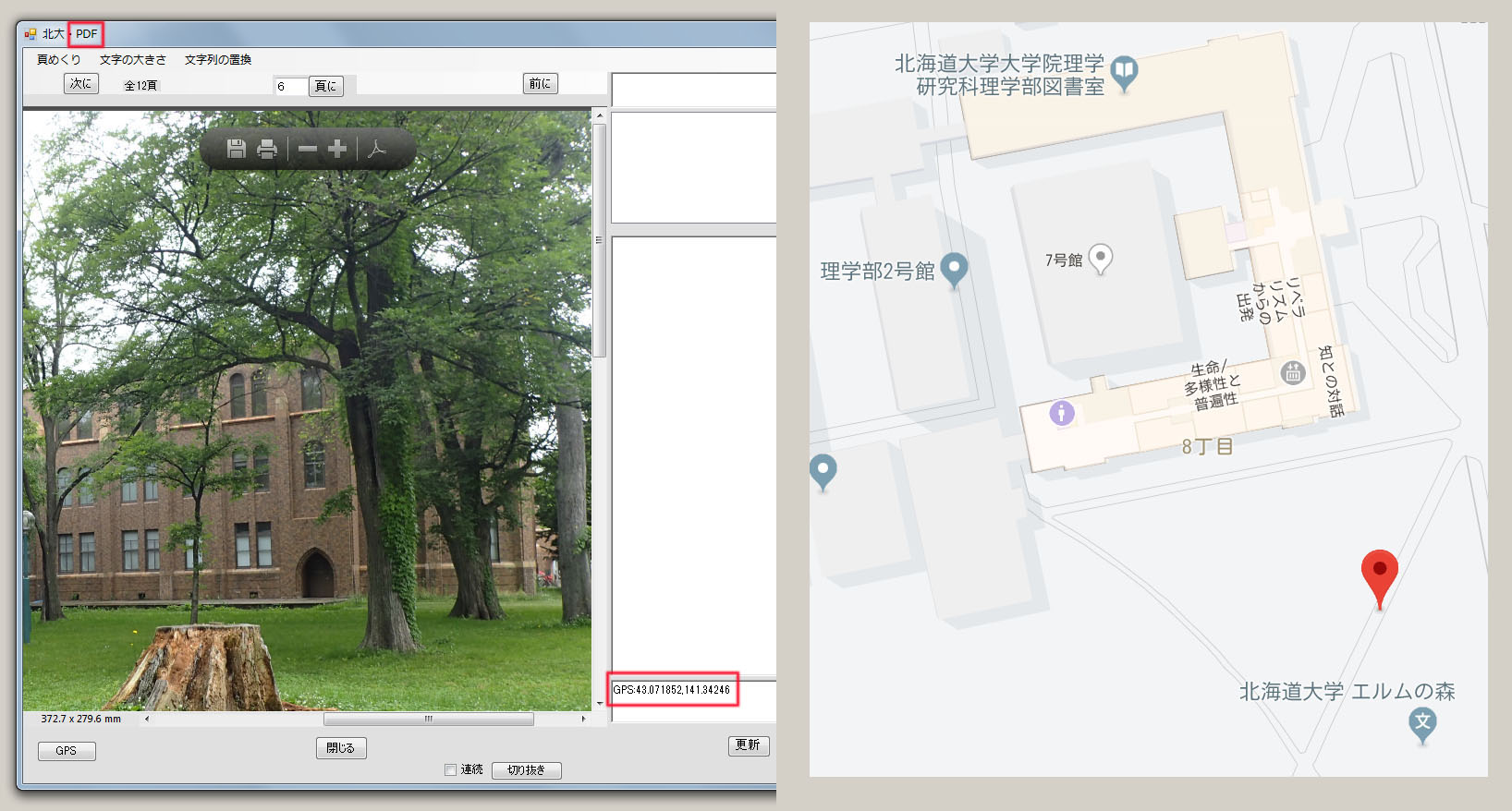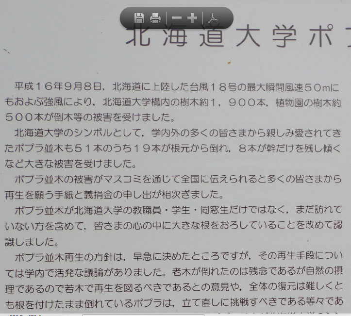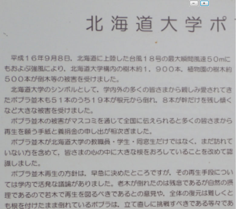 拡大したJPG画像とPDF画像を比較します。 JPG画像は、拡大・縮小を繰り返すと、画質の劣化が見られます。これを回避する方法は、検討中です。 PDF画像での拡大・縮小では、画質の劣化は見られません。 必要があれば、JPG画像からPDF画像への変換を行なってください。